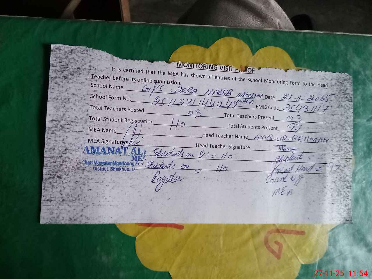 | EMIS Code: 35431117 | Name of School: GPS DERA HABIB MANANWALA | |||