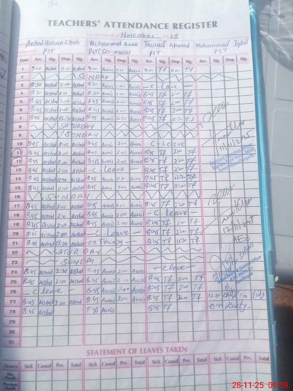 | Name: AR**** HU**** SH**** Designation: (School Headmaster's/Headmistress's) PST Phone/Cell Number: 03**** |