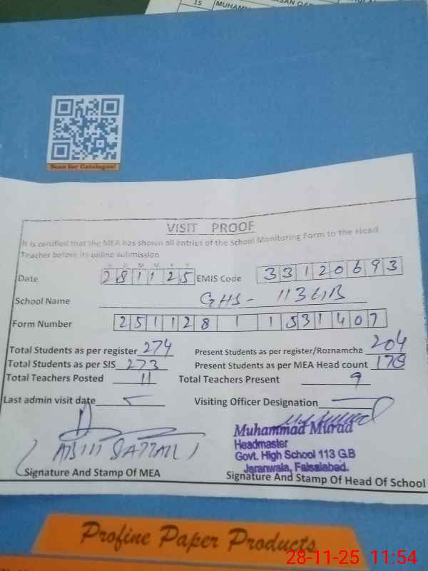 | EMIS Code: 33120693 | Name of School: GHS CHAK NO 113 GB | |||