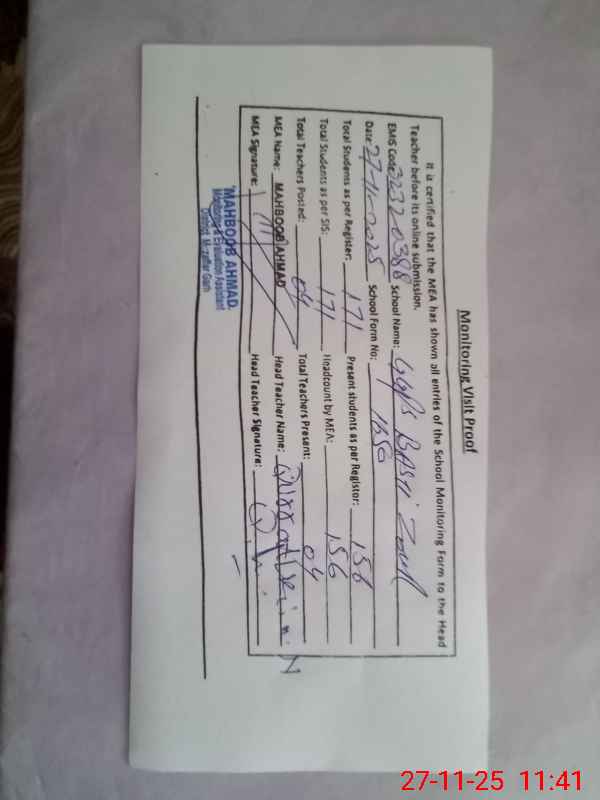 | EMIS Code: 32320388 | Name of School: GGPS BASTI ZOUR | |||