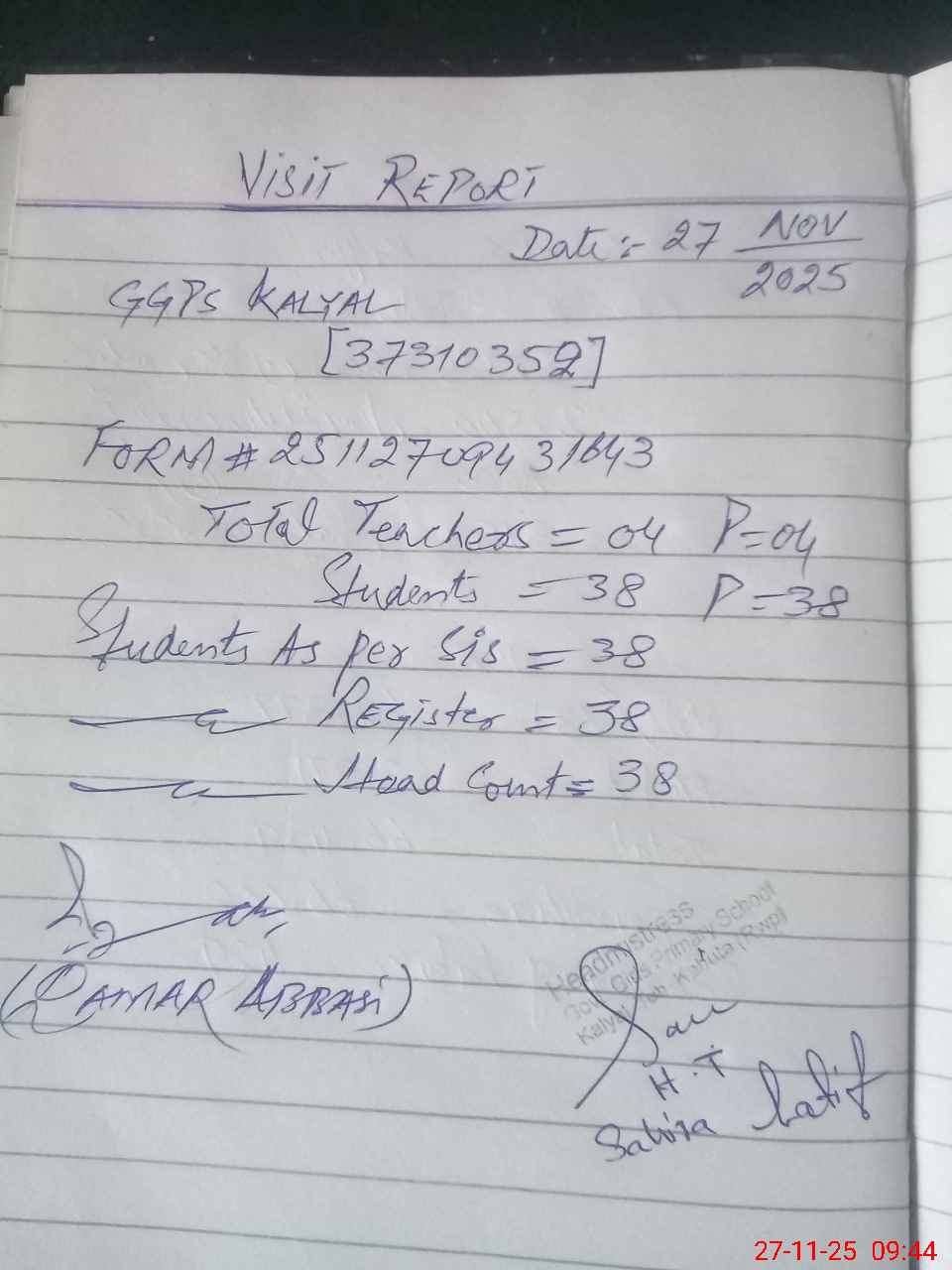 | Attendance Register | Head Teacher | MEA with School | Visit Proof |
