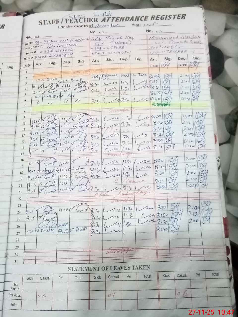 | 37**** | Ra**** Mu**** Ma**** Sa**** | HEADMASTER | Regular | 0 | 0 | 0 | 0 | 0 | 0 | 0 | 0 | 0 | Exam Duty |