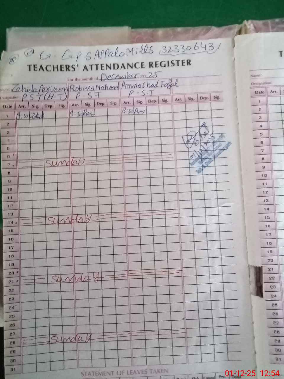 | CNIC | Full Name | Designation | R/C | Absence During Last Calender Month |