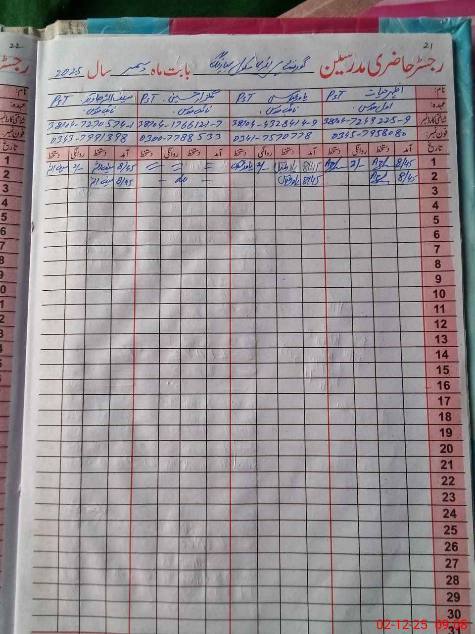 | Name: Az**** Ha**** Designation: (School Headmaster's/Headmistress's) PTC/JV Phone/Cell Number: 03**** |