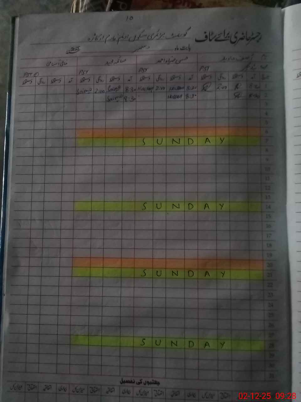 | CNIC | Full Name | Designation | R/C | Absence During Last Calender Month |