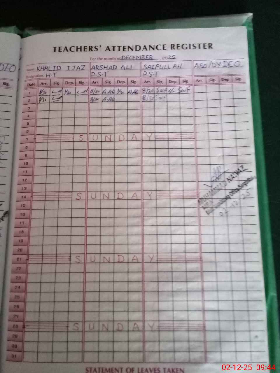 | Name: Kh**** Ij**** Designation: (School Headmaster's/Headmistress's) PST Phone/Cell Number: 03**** |