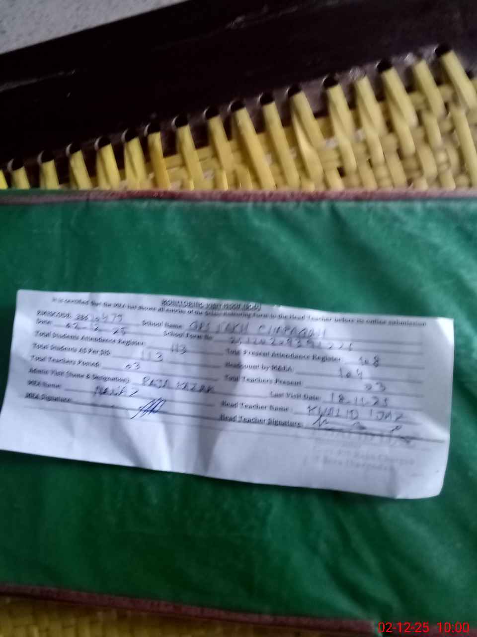| Attendance Register | Head Teacher | MEA with School | Visit Proof |