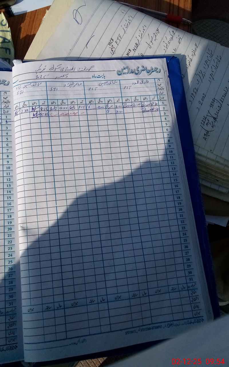 | CNIC | Full Name | Designation | R/C | Absence During Last Calender Month |