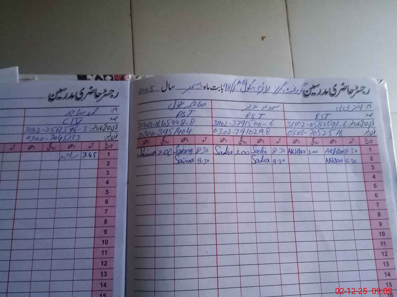 | CNIC | Full Name | Designation | R/C | Absence During Last Calender Month |