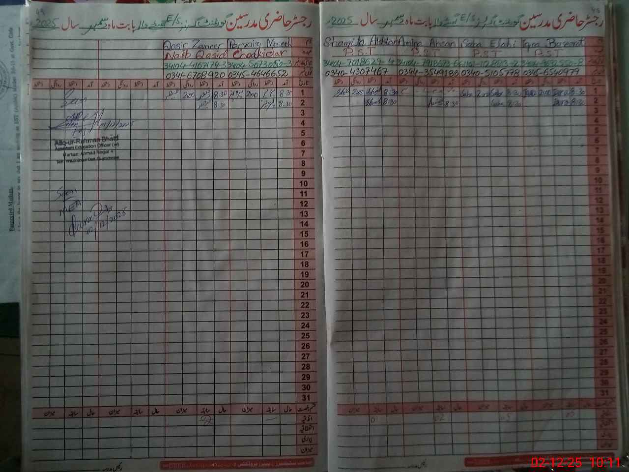 | Name: Sh**** Ta**** Designation: (School Headmaster's/Headmistress's) SST (S) Phone/Cell Number: 03**** |