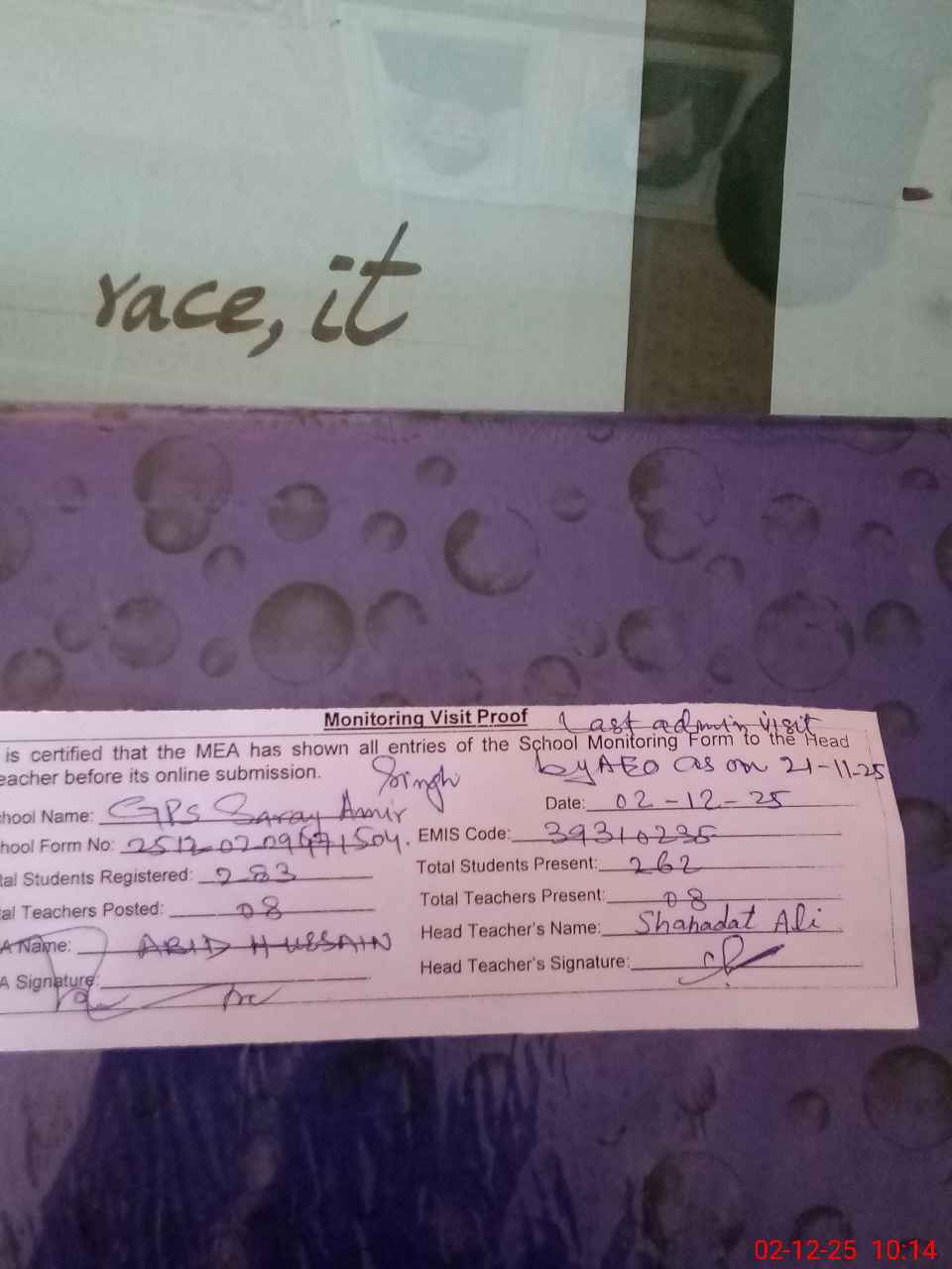 | Remarks (Use Separate Page if Required): Last Administrator visit by AEO as on 21-11-2025. | |||||