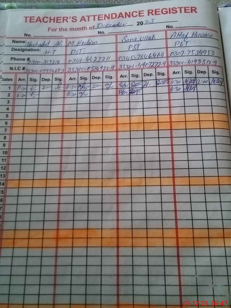 | Name: Sh**** Al**** Designation: (School Headmaster's/Headmistress's) PST Phone/Cell Number: 03**** |