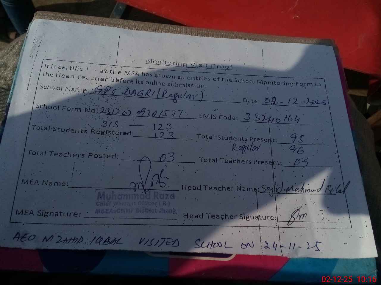 | Certified that this School was Inspected by the Undersigned MEA/DMO Today and the Information Stated Above is as Per Record. | |||||
