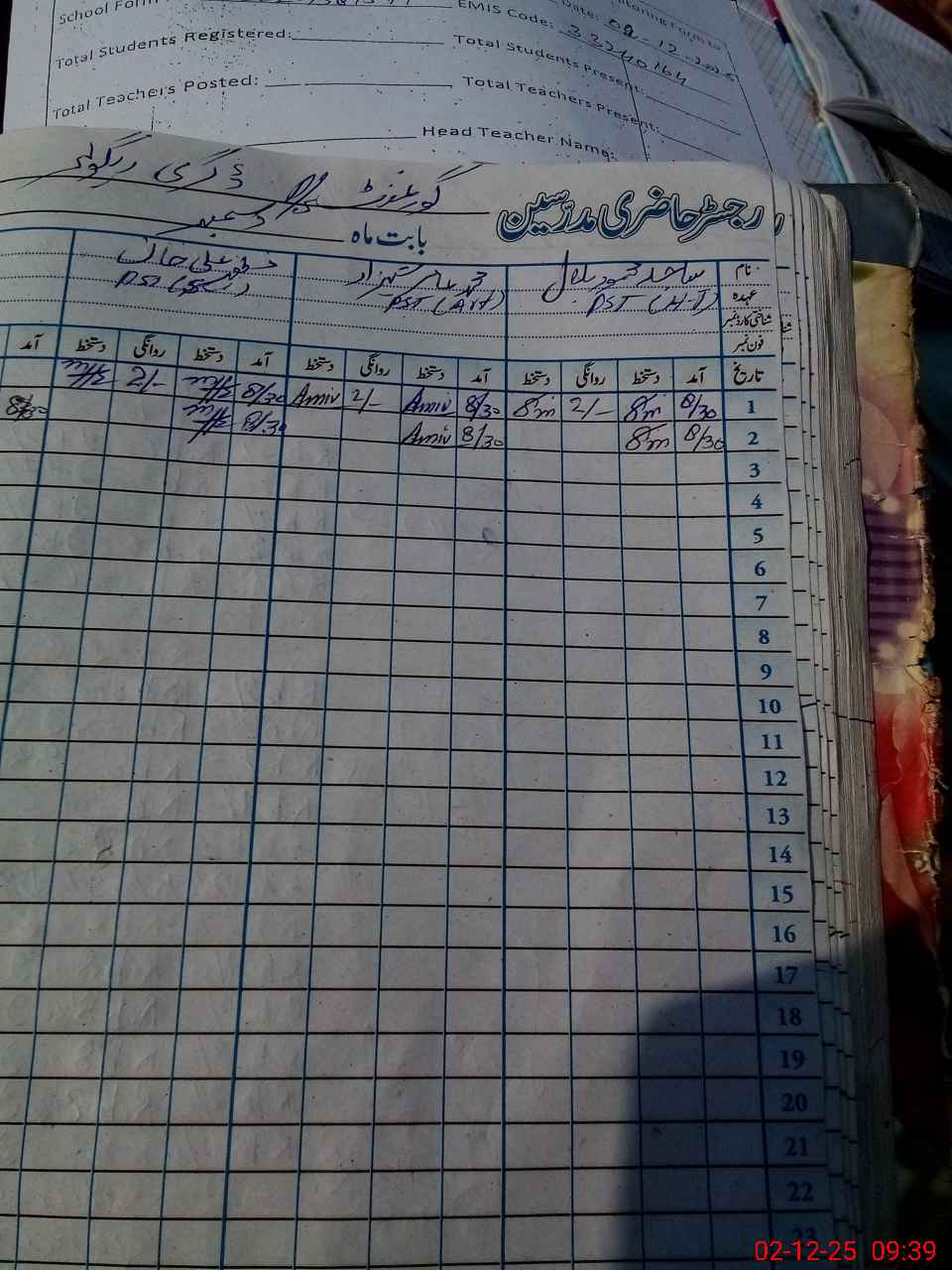 | Name: SA**** ME**** BI**** Designation: (School Headmaster's/Headmistress's) PST Phone/Cell Number: 03**** |