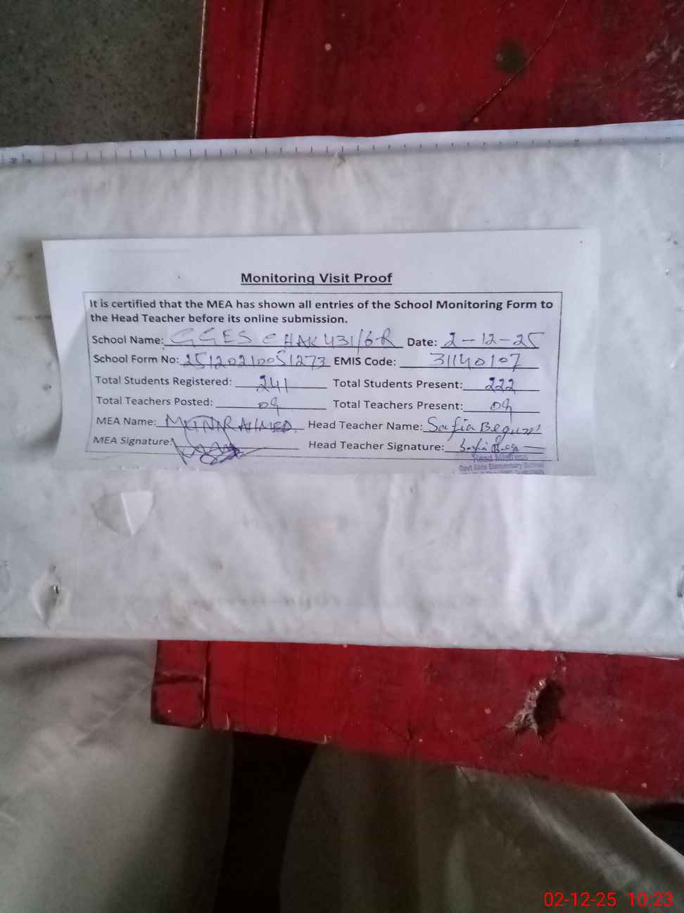 | EMIS Code: 31140107 | Name of School: GGES CHAK 431/6-R | |||