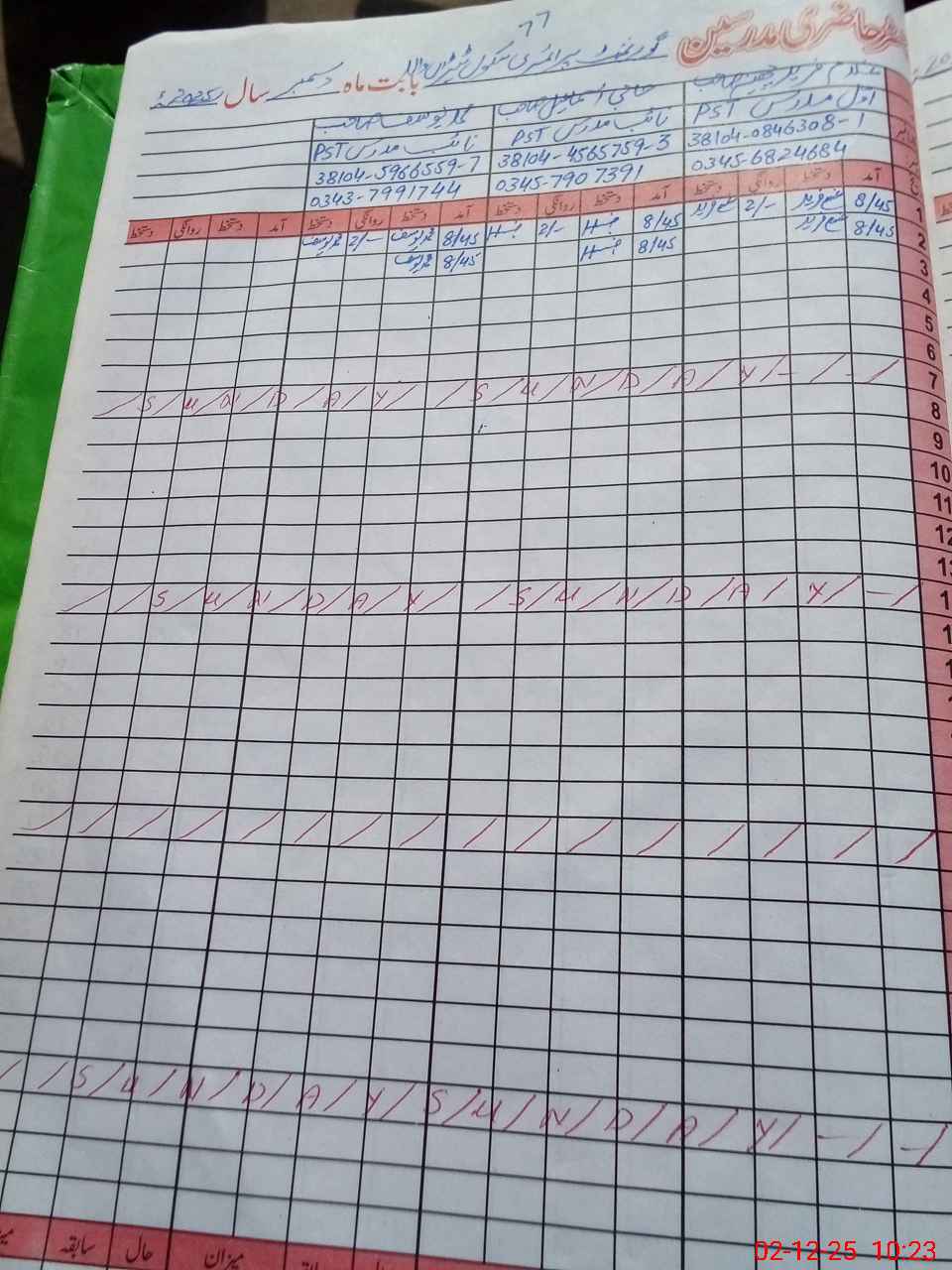 | CNIC | Full Name | Designation | R/C | Absence During Last Calender Month |