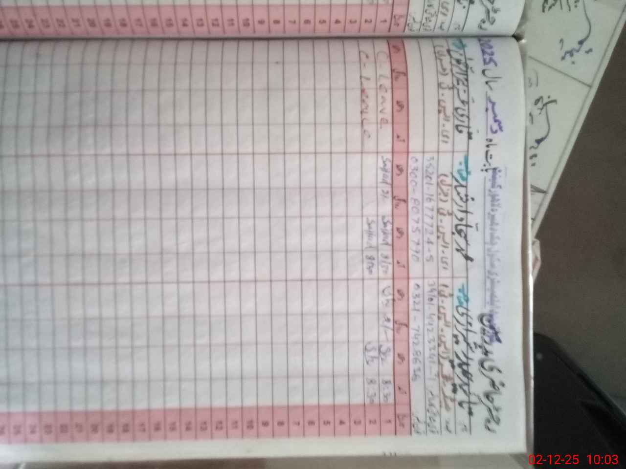 | CNIC | Full Name | Designation | R/C | Absence during last cal. month |
