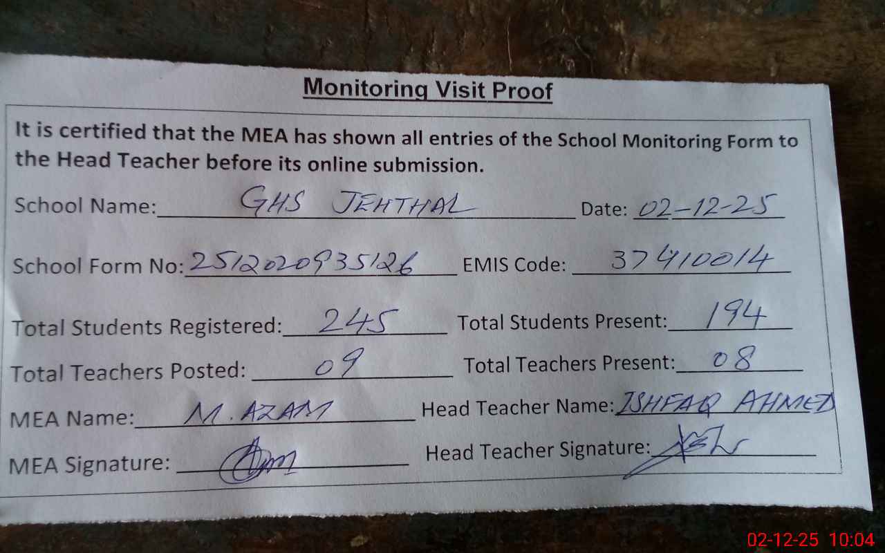 | EMIS Code: 37410014 | Name of School: GHS JETHAL CHAKWAL | |||