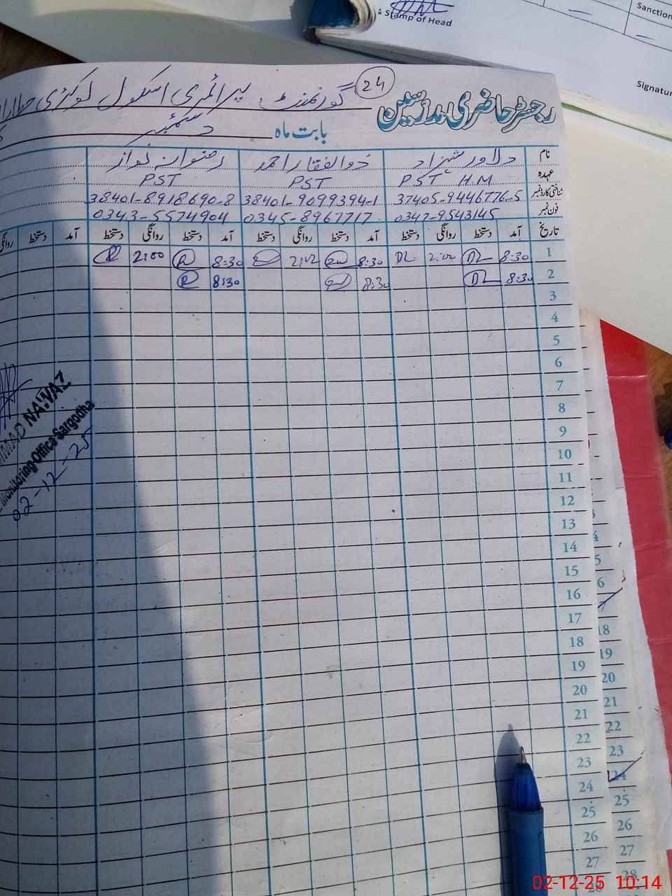 | Name: Di**** Sh**** Designation: (School Headmaster's/Headmistress's) PST Phone/Cell Number: 03**** |