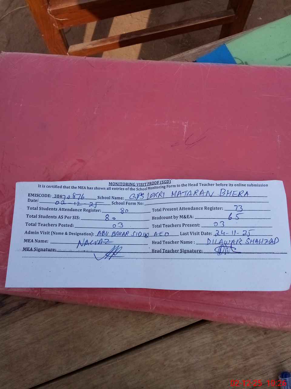 | EMIS Code: 38470876 | Name of School: GPS LOKRI HATARAN BHERA | |||