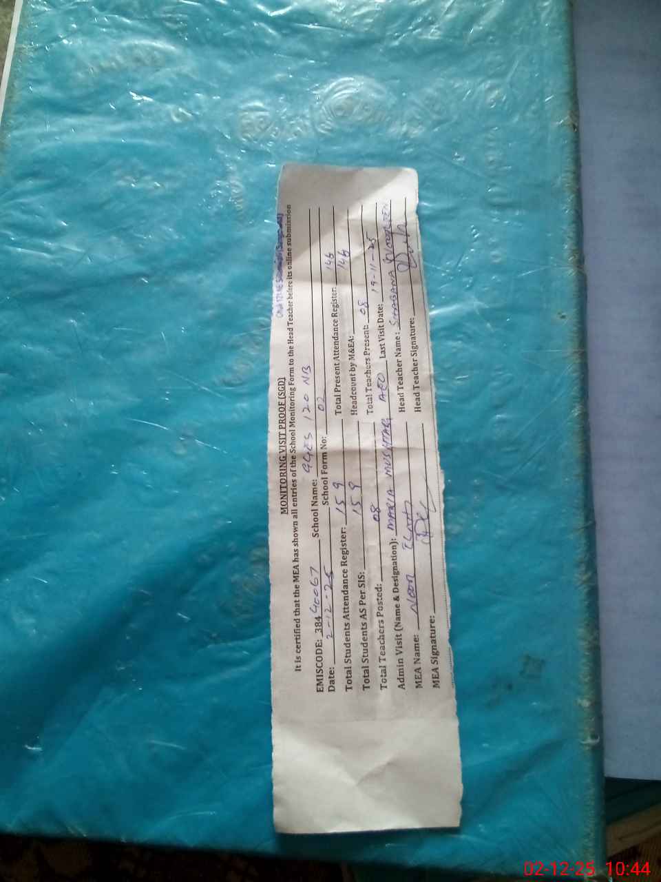 | Attendance Register | Head Teacher | MEA with School | Visit Proof |