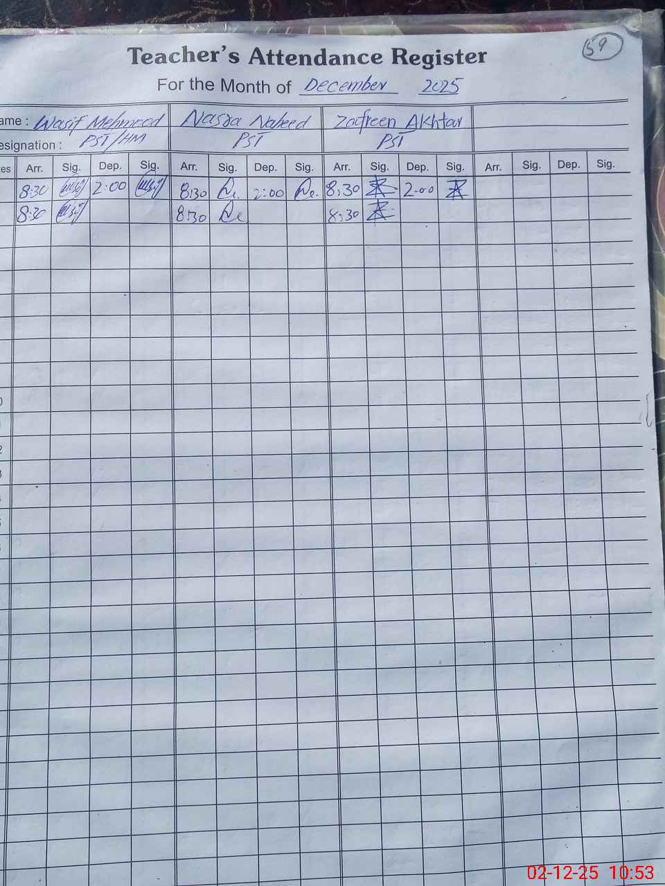 | CNIC | Full Name | Designation | R/C | Absence During Last Calender Month |