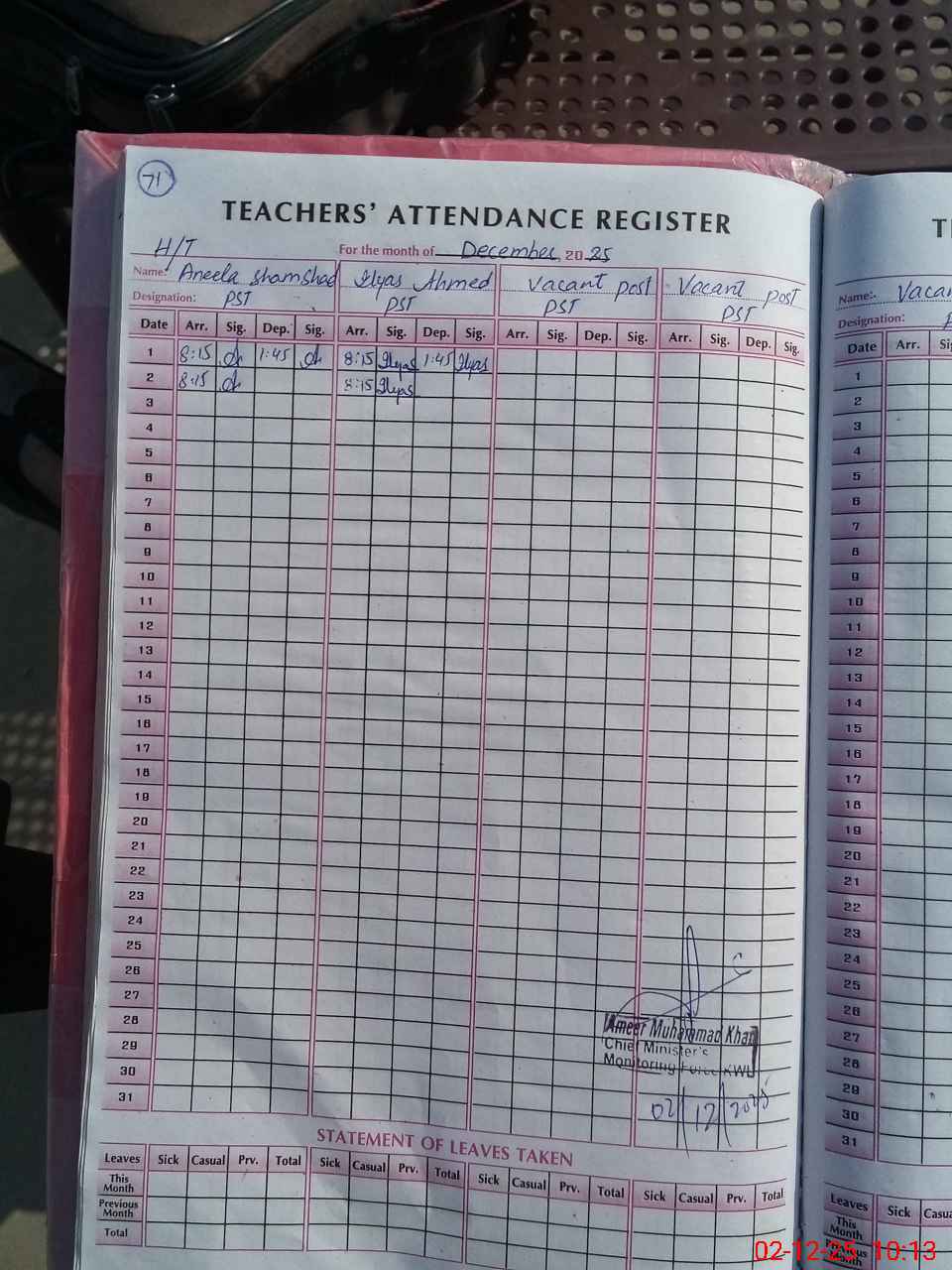 | Name: An**** Sh**** Designation: (School Headmaster's/Headmistress's) PST Phone/Cell Number: 03**** |