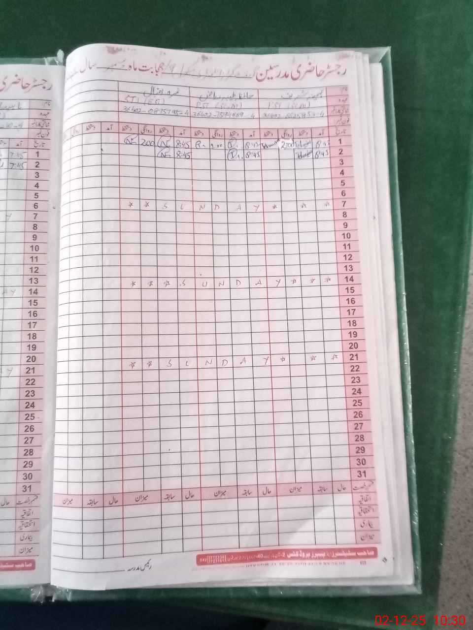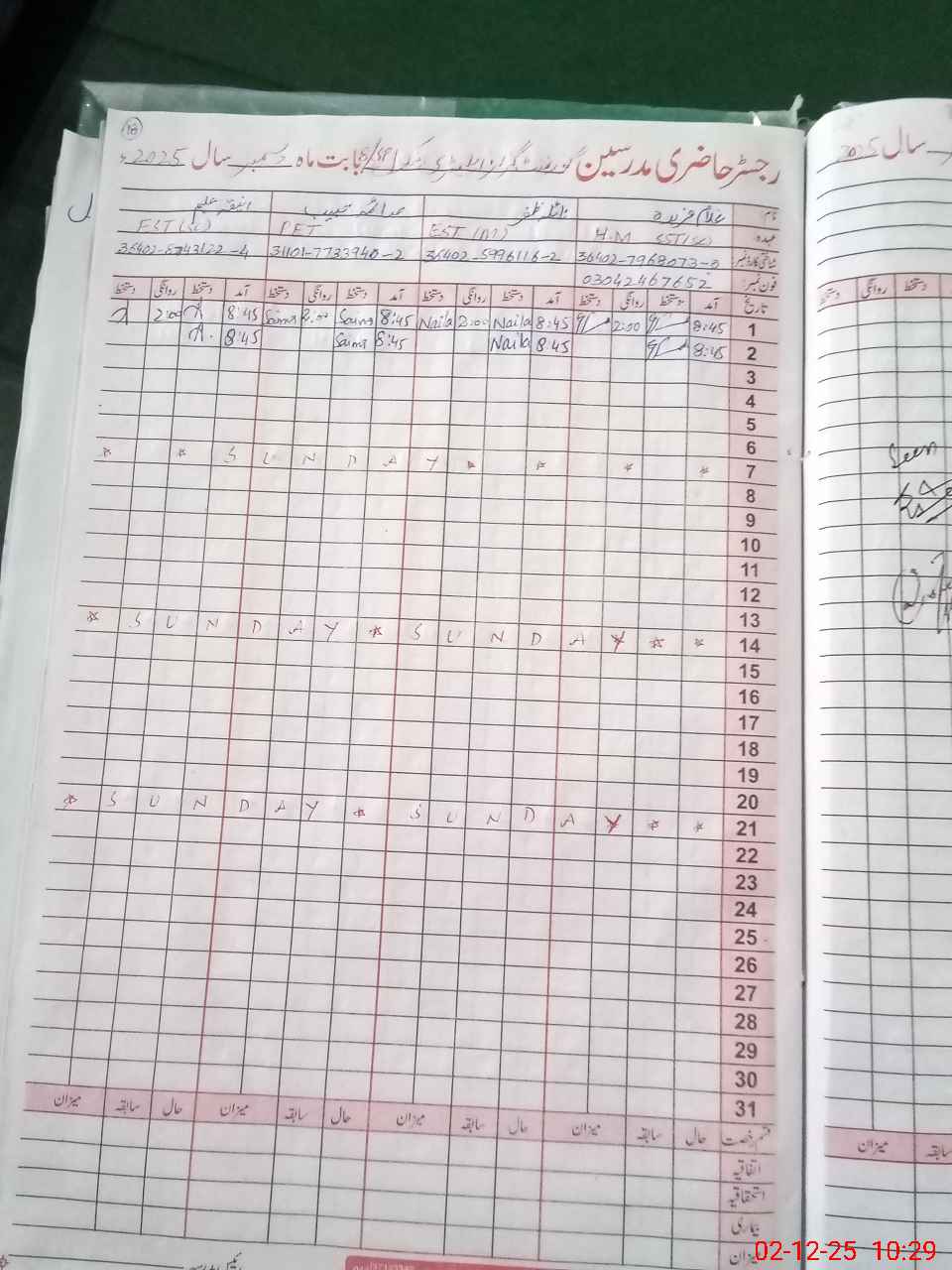| Name: Gh**** Fa**** Designation: (School Headmaster's/Headmistress's) SST Science Phone/Cell Number: 03**** |