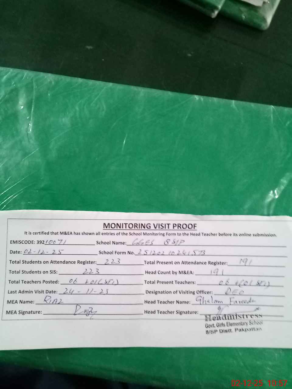 | EMIS Code: 39210071 | Name of School: GGES 8 SP | |||