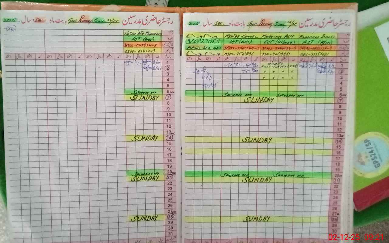 | Attendance Register | Head Teacher | MEA with School | Visit Proof |