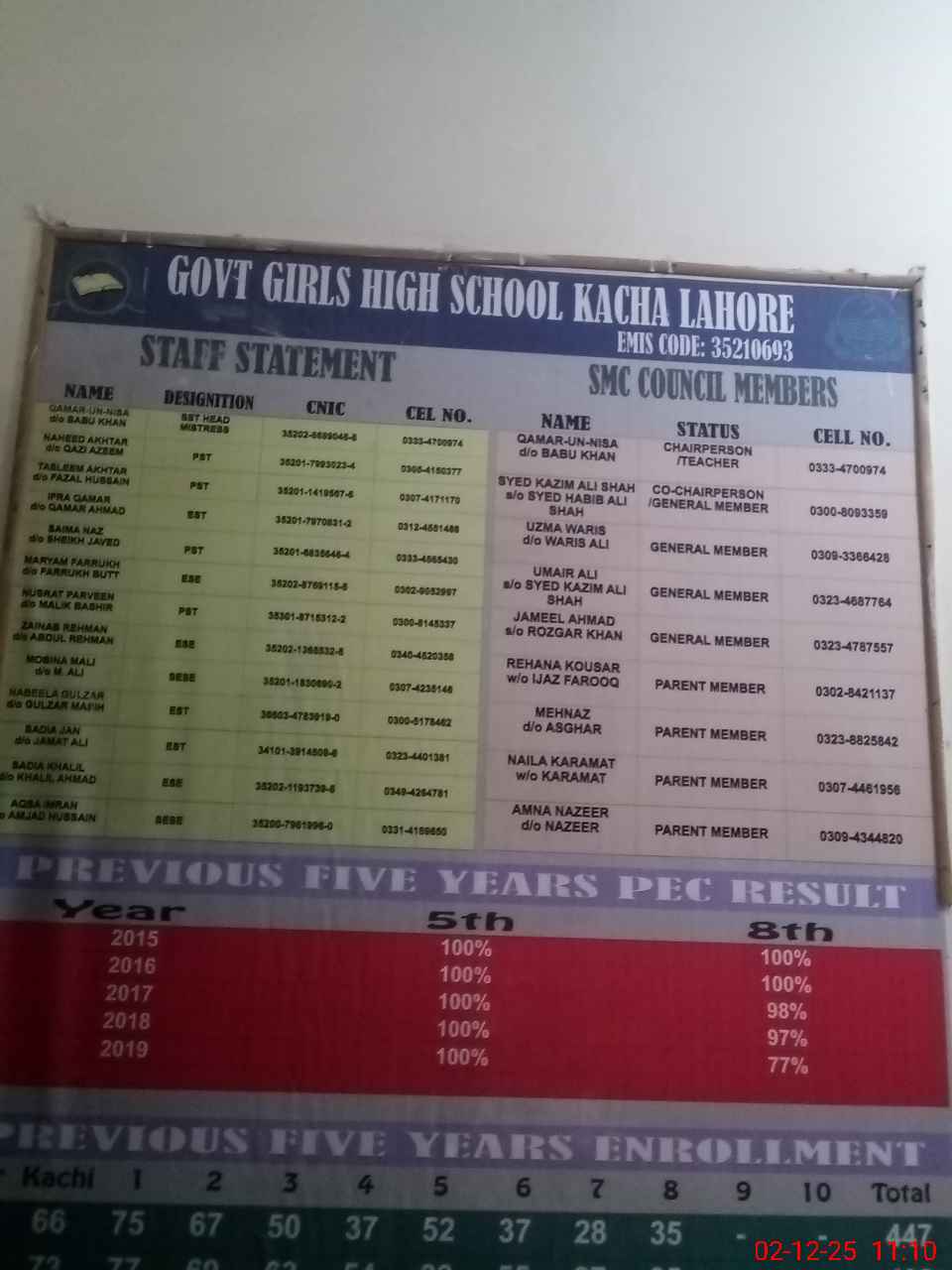 | EMIS Code: 35210693 | Name of School: GGHS KACHA (Newly Upgraded) | |||