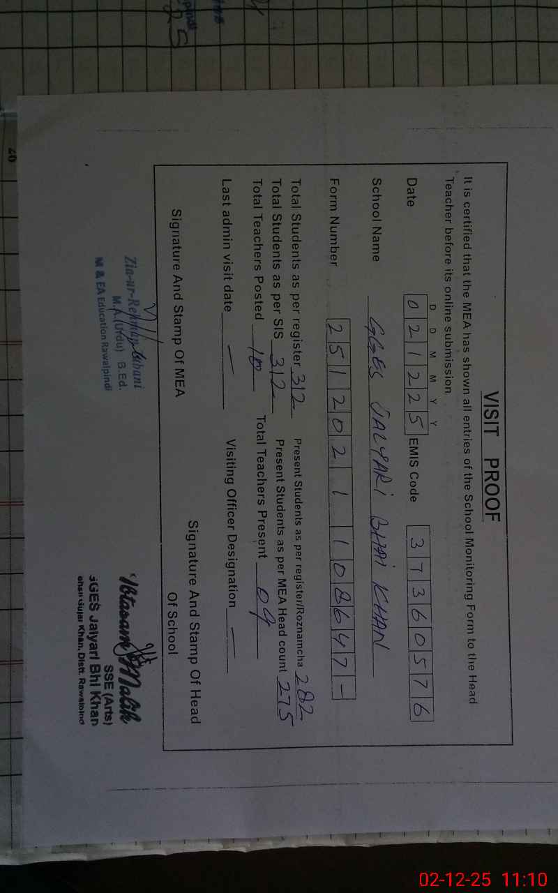 | EMIS Code: 37360576 | Name of School: GGES JALYARI BHI KHAN | |||