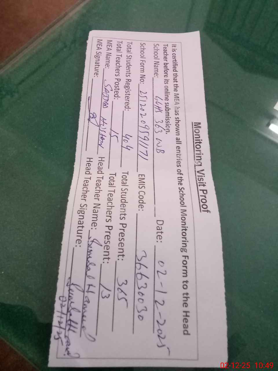 | Certified that this School was Inspected by the Undersigned MEA/DMO Today and the Information Stated Above is as Per Record. | |||||