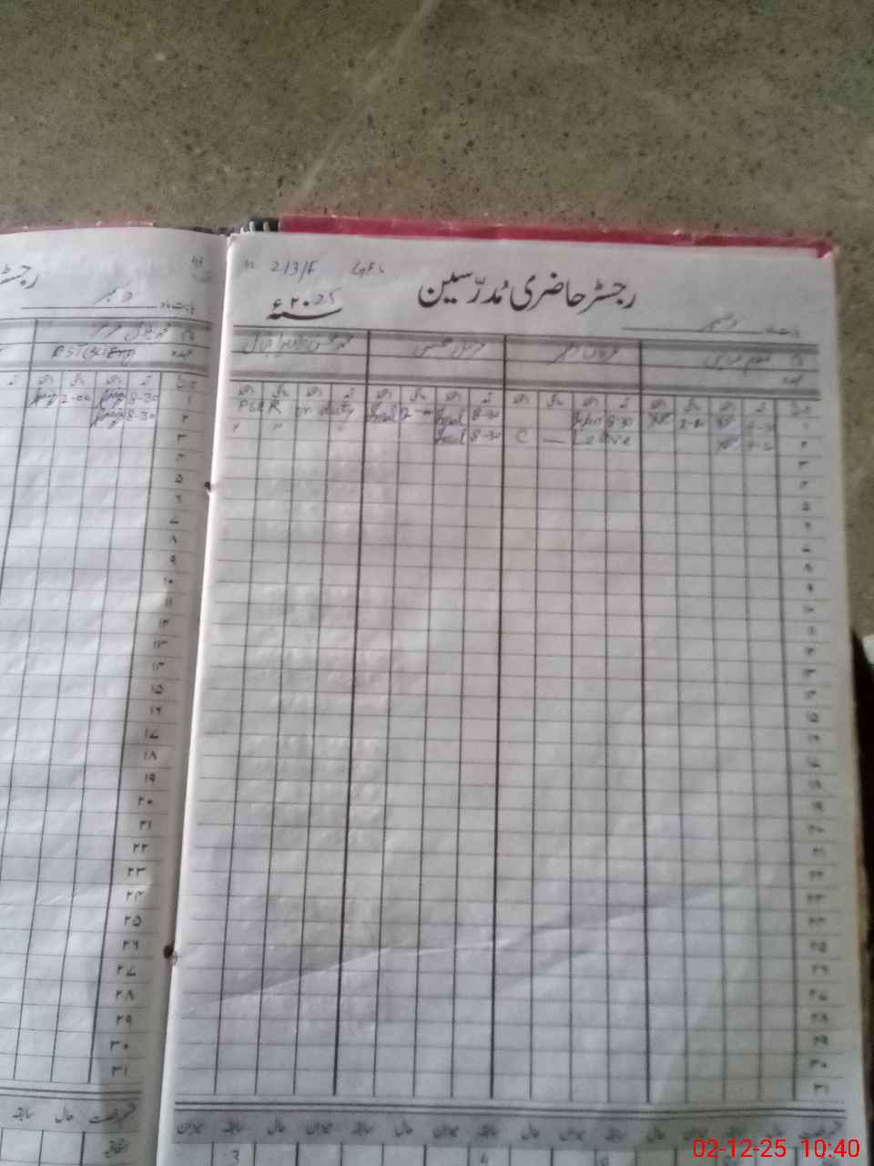 | CNIC | Full Name | Designation | R/C | Absence During Last Calender Month |