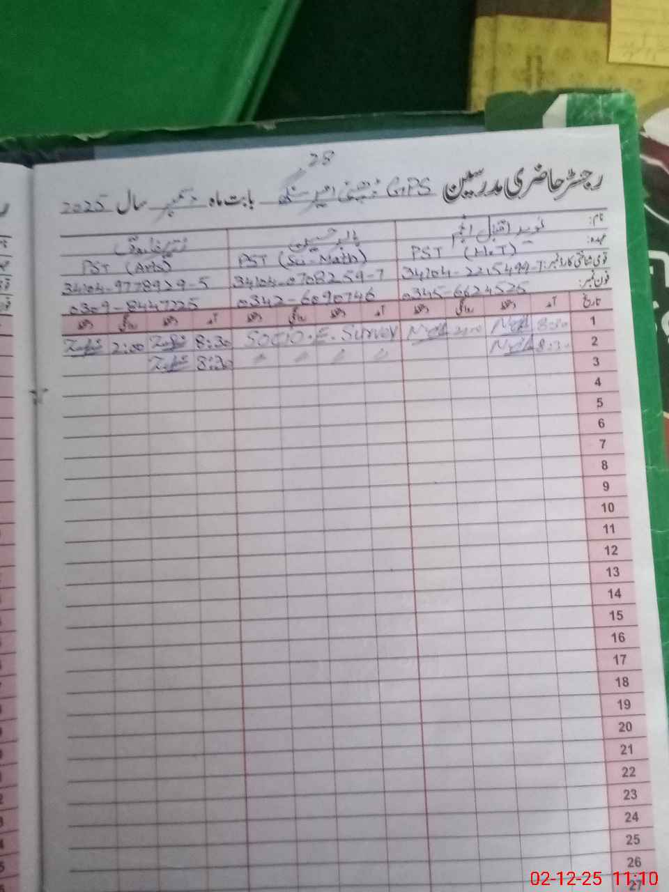 | Name: NA**** IQ**** AN**** Designation: (School Headmaster's/Headmistress's) PST/PTC/JV Phone/Cell Number: 03**** |