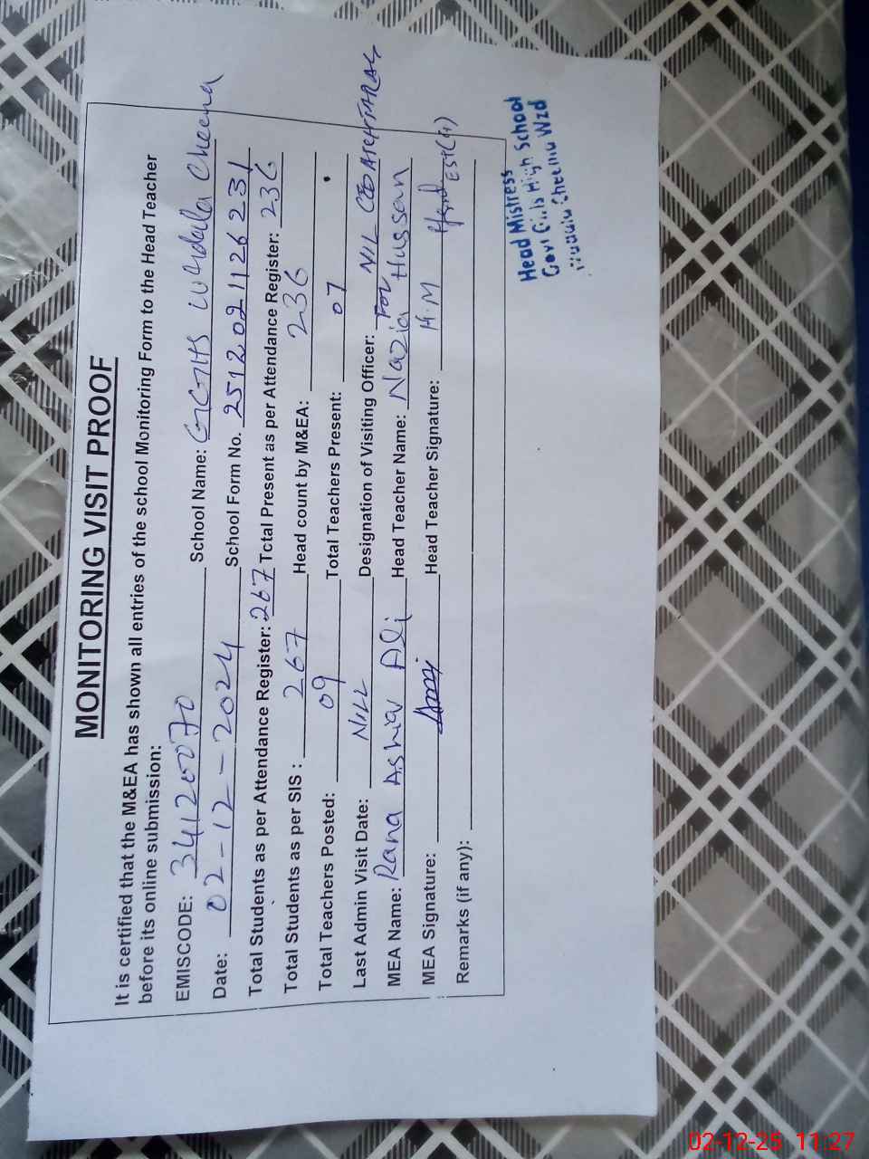 | EMIS Code: 34120070 | Name of School: GGHS WADALA CHEEMA | |||