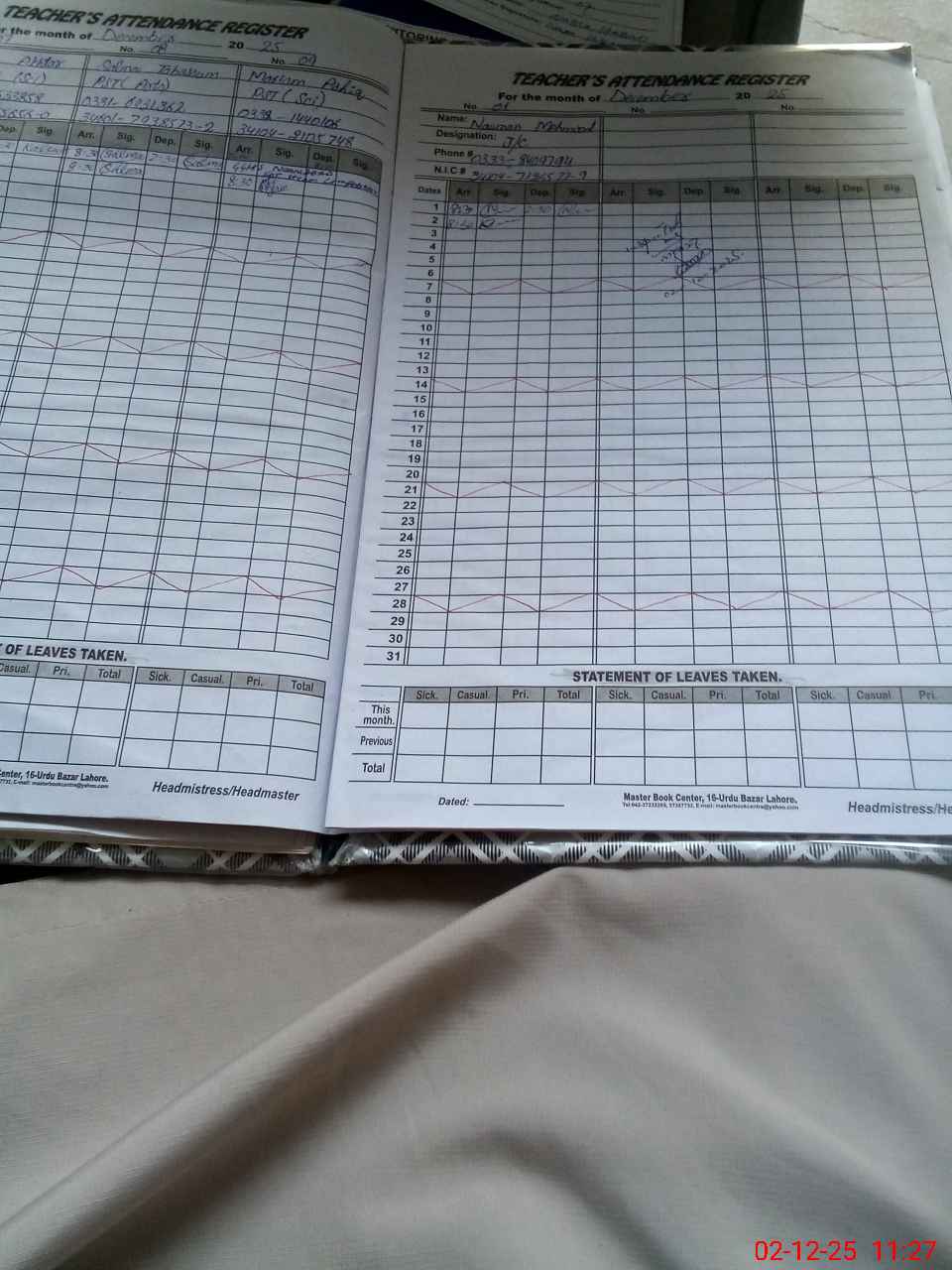 | Name: NA**** HA**** Designation: (School Headmaster's/Headmistress's) S.S.T.arts Phone/Cell Number: 03**** |