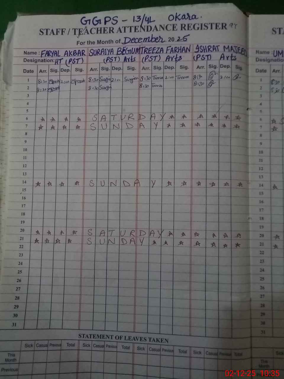 | Leave | Duty | Absent | Maternity | Medical | Ex- Pak |