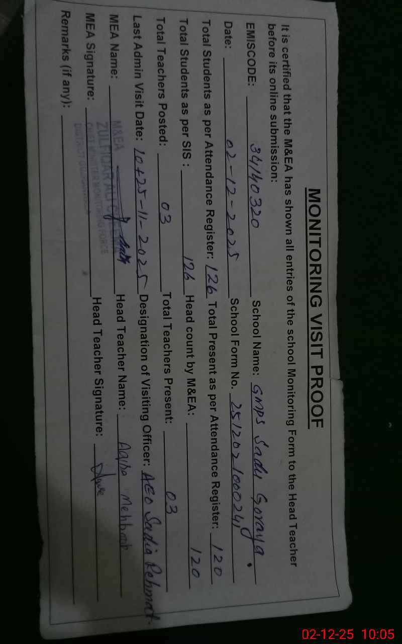 | EMIS Code: 34140320 | Name of School: GMPS SADU GORAYA | |||