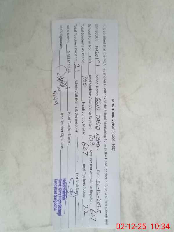 | EMIS Code: 38420191 | Name of School: GGHS TARIQ ABAD SARGODHA | |||