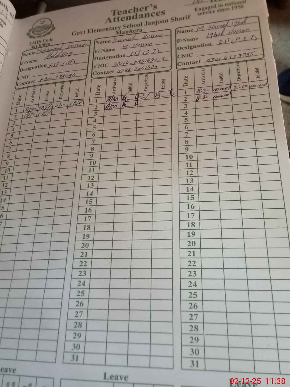 | Name: Sh**** Al**** Designation: (School Headmaster's/Headmistress's) S S T Phone/Cell Number: 03**** |