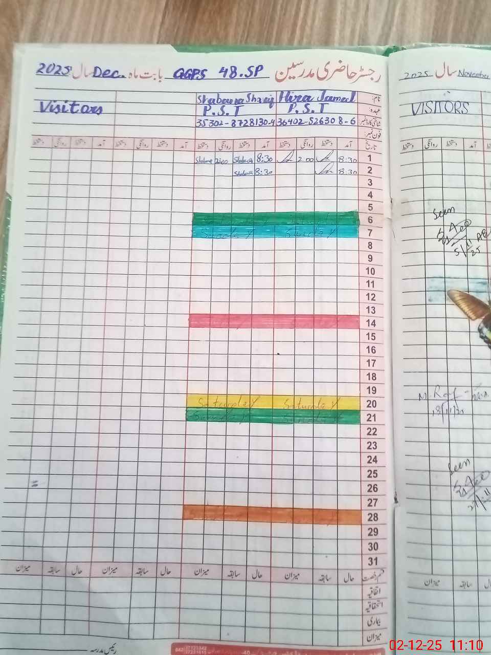 | School Visited by School Health & Nutrition Supervisor (No. of Visits) | 1 | Name1: | Durdhana Safdar | Name2: | Nil |