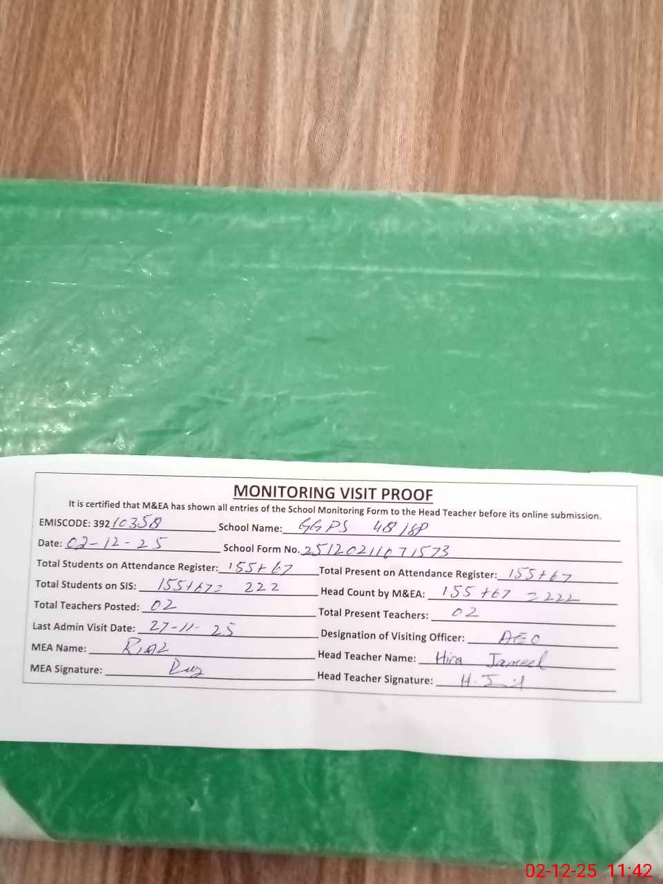 | EMIS Code: 39210358 | Name of School: GGPS 48 SP | |||