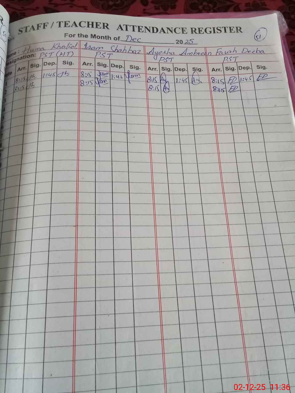 | CNIC | Full Name | Designation | R/C | Absence During Last Calender Month |