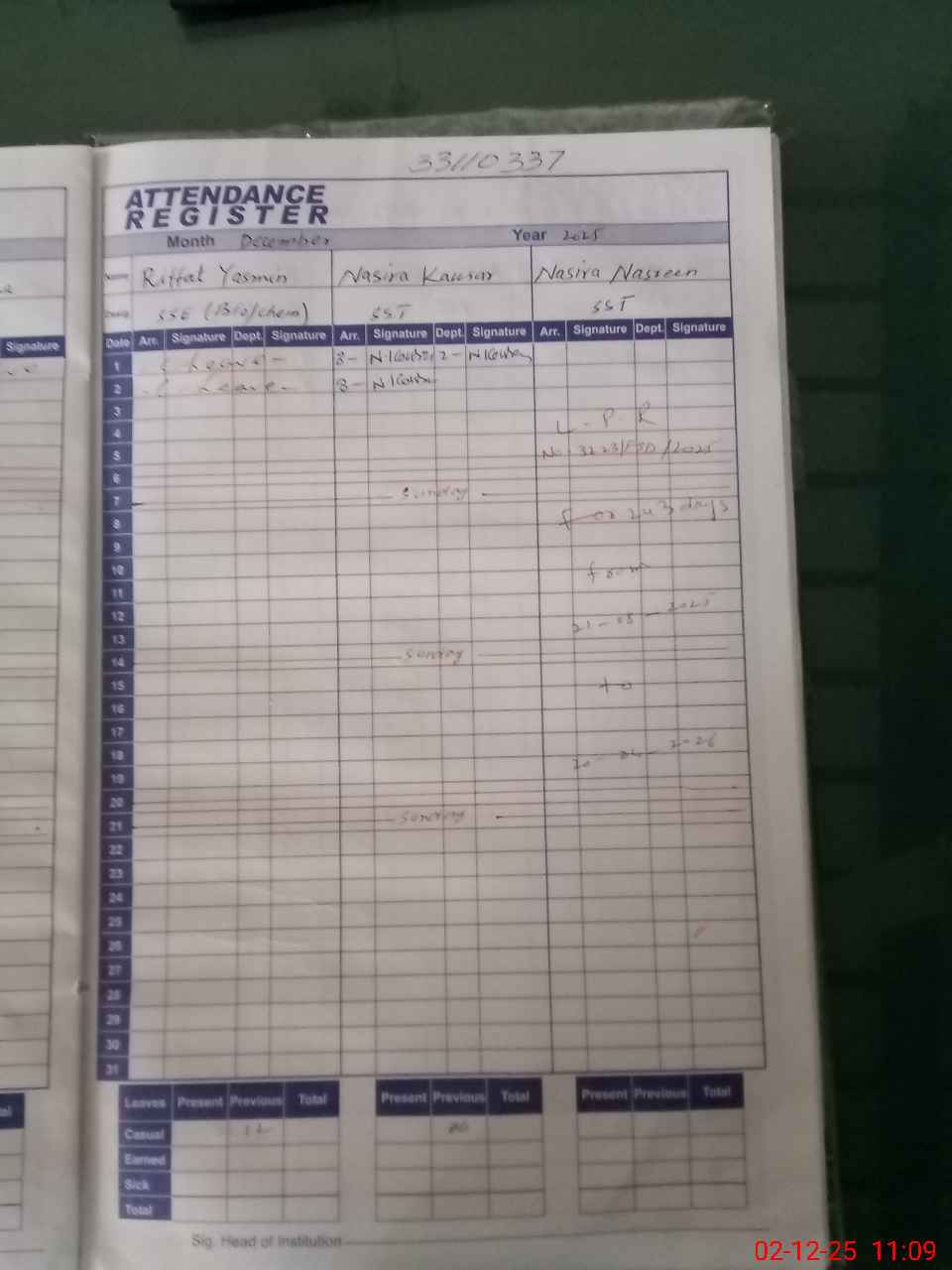 | 31**** | Si**** Ra**** | Regular | 0 | 0 | 30 | 0 | 0 | 0 | 0 | 0 | 0 | Absent (Un-Authorized) | |