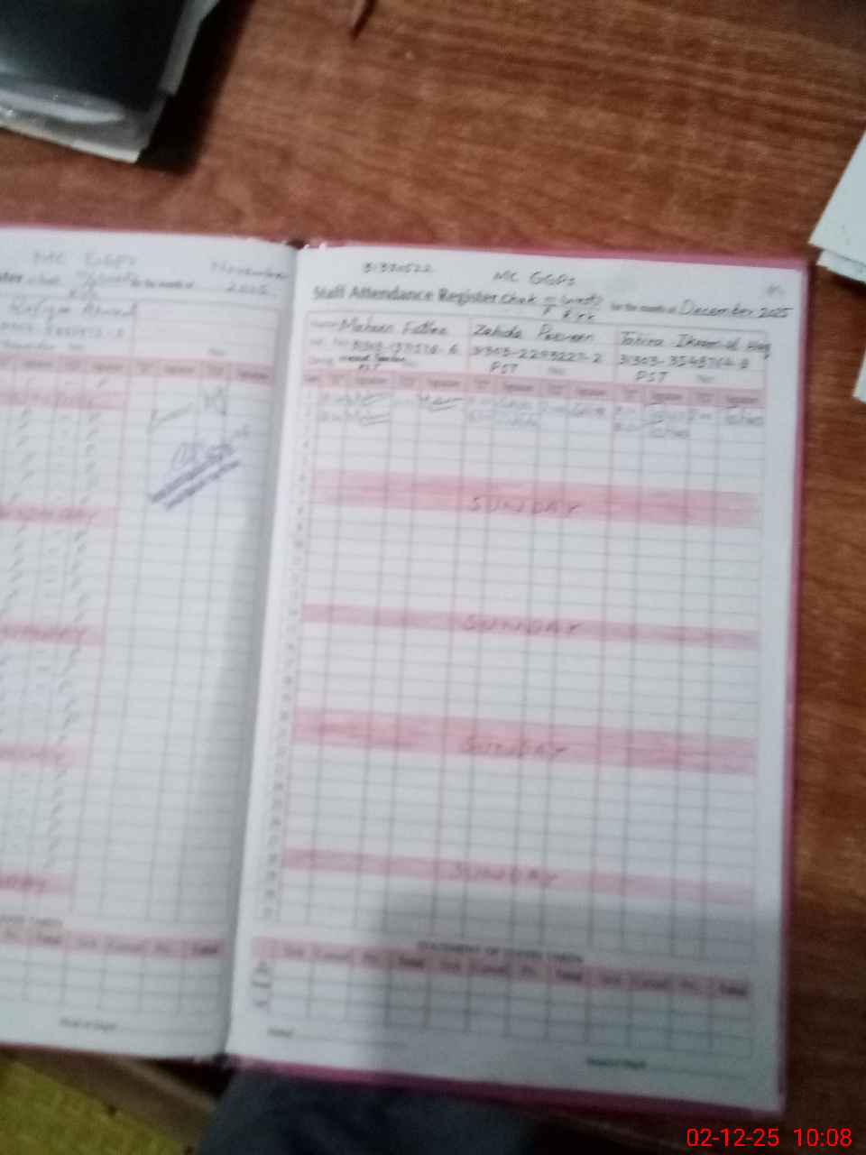 | CNIC | Full Name | Designation | R/C | Absence During Last Calender Month |