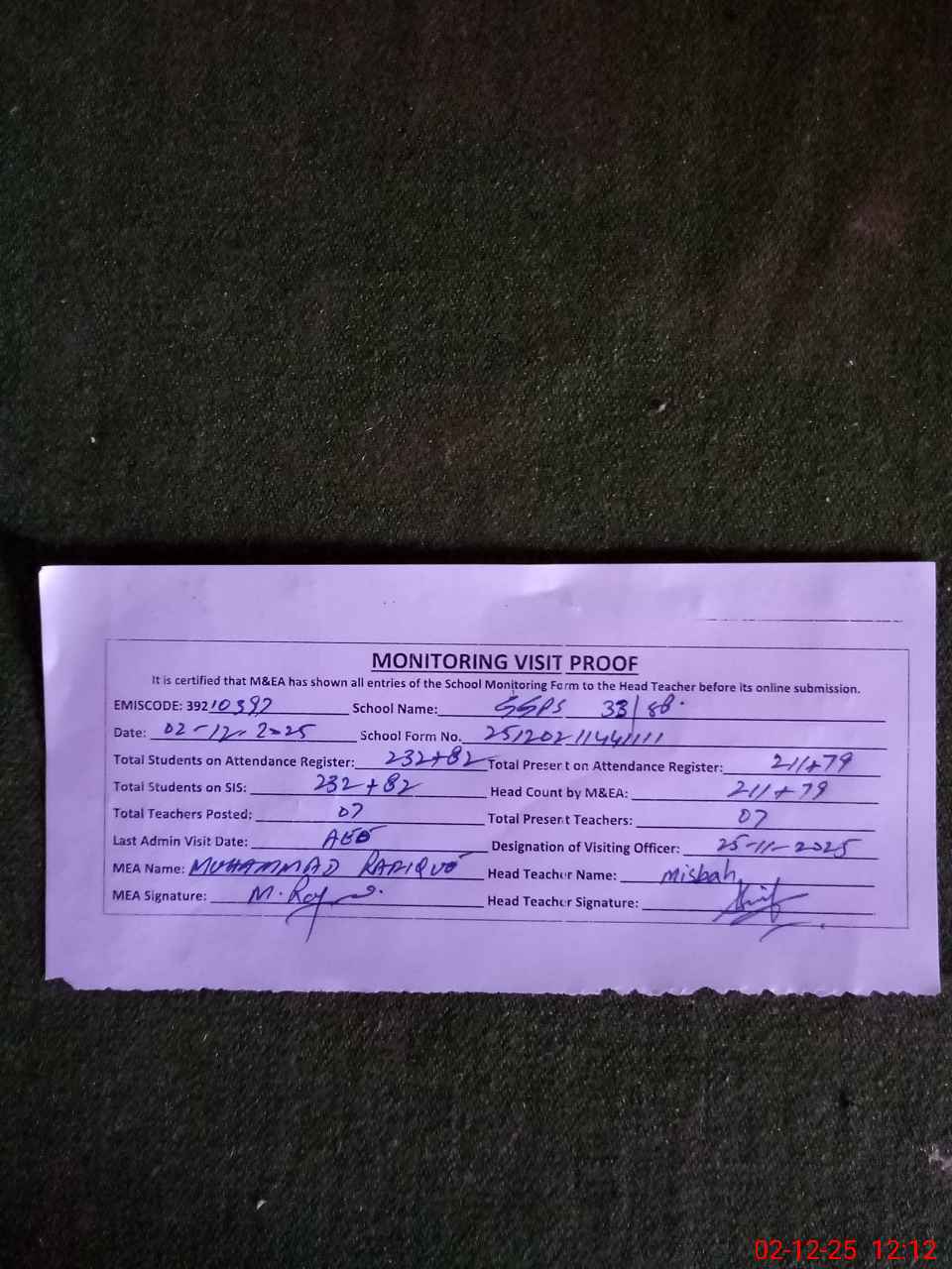 | EMIS Code: 39210397 | Name of School: GGPS 33 SP | |||