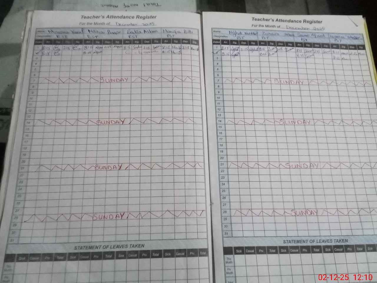 | CNIC | Full Name | Designation | R/C | Absence During Last Calender Month |