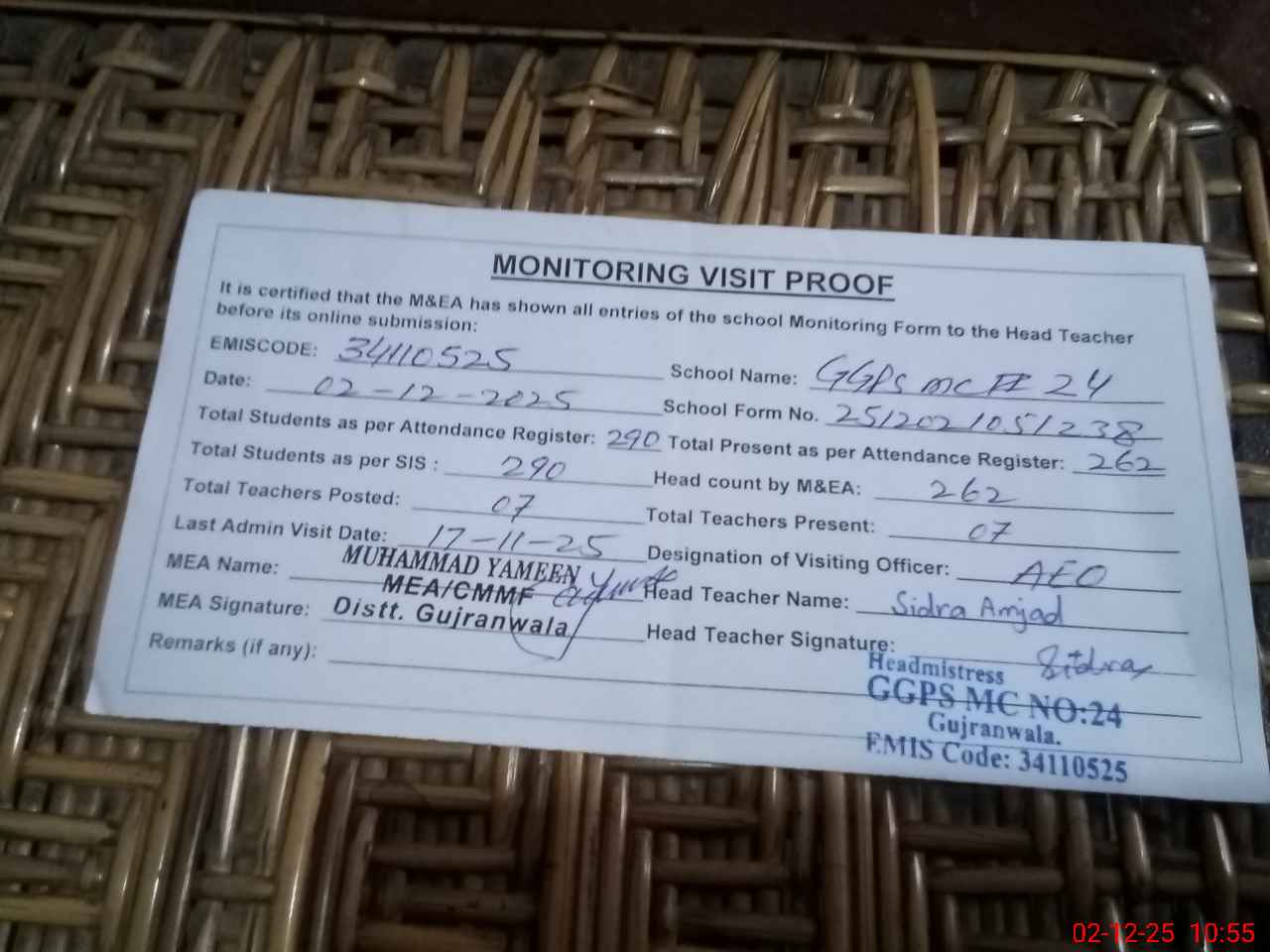 | EMIS Code: 34110525 | Name of School: GGPS MC NO.24 GUJRANWALA | |||