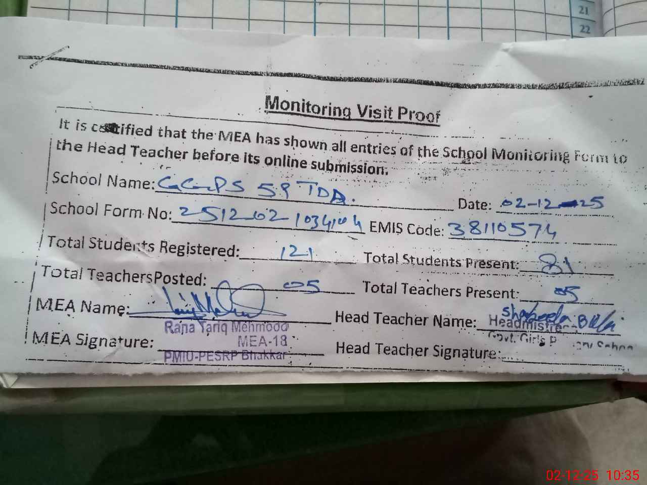 | EMIS Code: 38110574 | Name of School: GGPS CHAK NO.59/TDA | |||